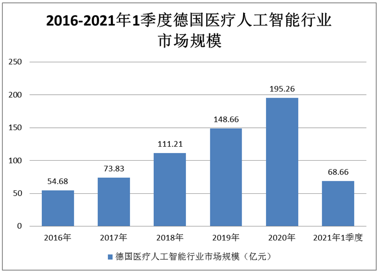 据统计,2016年德国医疗人工智能行业市场规模为54.68亿元,到2020年德国医疗人工智能行业市场规模增长到195.26亿元,2016-20211季度德国医疗人工智能行业市场规模如下: