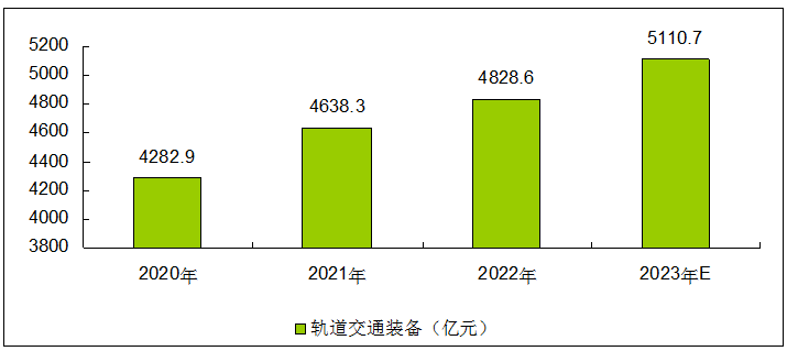 2022 年,中国轨道交通装备产业整体呈现低增长态势,产业规模达到4828.6亿元,同比增长4.1%。预计到2023年,产业规模有望达到5110亿元。