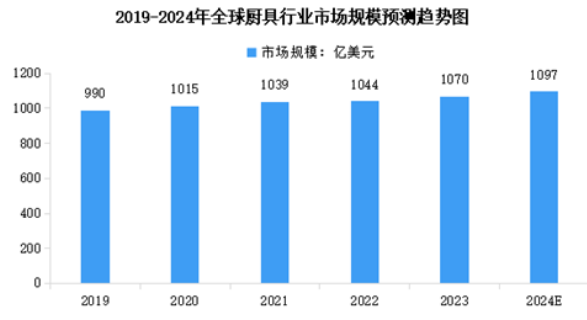 厨具是厨房用具的统称。厨房用具主要包括5大类:第一类是储藏用具;第二类是洗涤用具;第三类是调理用具;第四类是烹调用具;第五类是进餐用具。随着愈加繁忙的城市生活节奏安排、健康饮食意识加强以及人们将厨具视为生活方式消费品,全球厨具行业持续稳定发展。2023年的全球厨具行业市场规模为1070亿美元,是最大的消费领域之一。