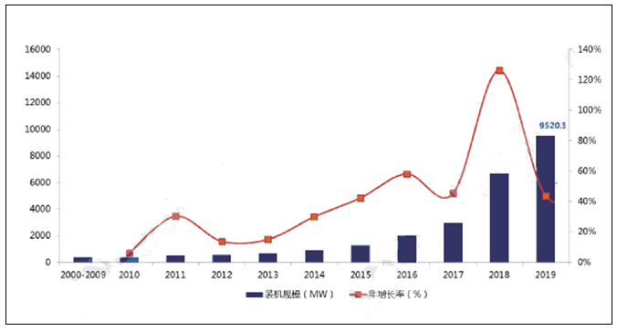 图表 2000-2019全球电化学储能市场累计装机规模