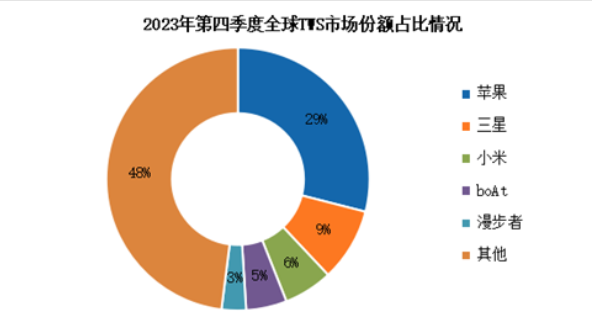 2023年全球真无线耳机(TWS)出货量约为2.95亿台,其中,2023年第四季度,TWS市场呈现稳健的增长态势,出货量同比增长6.5%,较去年增加了500万台。