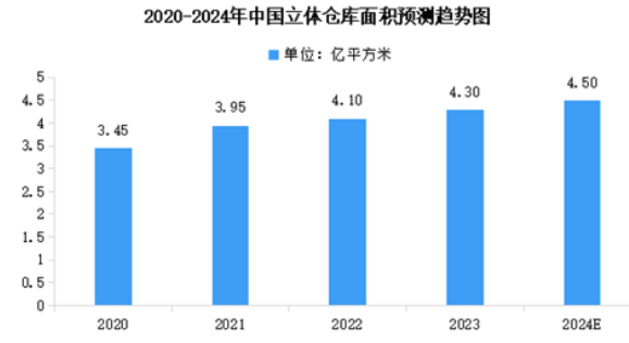 立体仓库也称为高架库或高架仓库,是一种现代化的仓储设施,它通过采用几层、十几层乃至几十层高的货架来储存单元货物,并利用相应的物料搬运设备进行货物的入库和出库作业。立体仓库是物流仓储中出现的新概念,利用立体仓库设备可实现仓库高层合理化、存取自动化、操作简便化。2023年中国立体仓储面积达4.3亿平方米,同比增长4.9%。2024年中国立体仓储面积将增至4.5亿平方米。