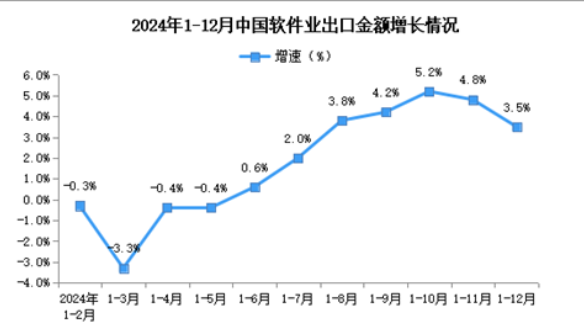 2024年,我国软件和信息技术服务业运行态势良好,软件业务收入平稳增长,利润总额增长放缓,软件业务出口保持正增长。