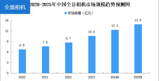 2023年中国全景相机市场规模10.6亿元,同比涨幅超20%。2024年中国全景相机市场规模将达12.3亿元,2025年将达13.9亿元。