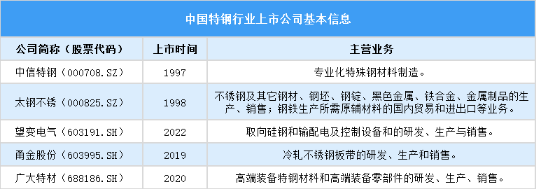 代表性企业有中信特钢,太钢不锈,甬金股份和方大特钢等。