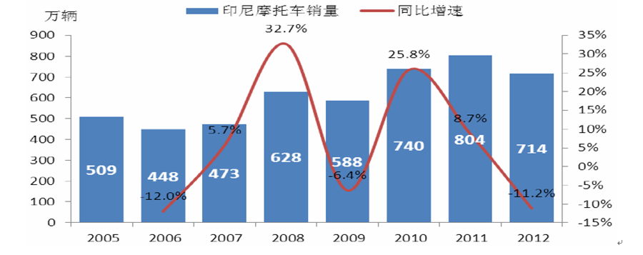 印度尼西亚是继中国和印度之后的全球第三大摩托车市场。印尼也由于其岛国的地理环境,及特殊的摩托车消费偏好,使得摩托车成为当地百姓最主要的交通方式。而且跨国知名摩托车工业如雅马哈(Yamaha)、本田(Honda)和铃木(Suzuki)也在印尼投资兴建摩托车工厂。公司目前在印尼的市场拓展刚刚起步,份额较小,未来提升空间较大。