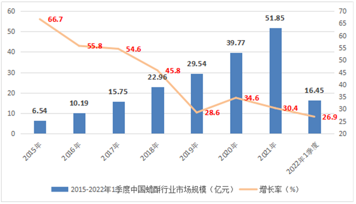 蟾酥市场规模随着下游行业需求规模不断扩大而增加,统计数据显示,2015-2022年1季度中国蟾酥行业市场规模呈现快速增长态势,2020年中国蟾酥行业市场规模39.77亿元,2021年中国蟾酥行业市场规模51.85亿元,同比增长30.4%。