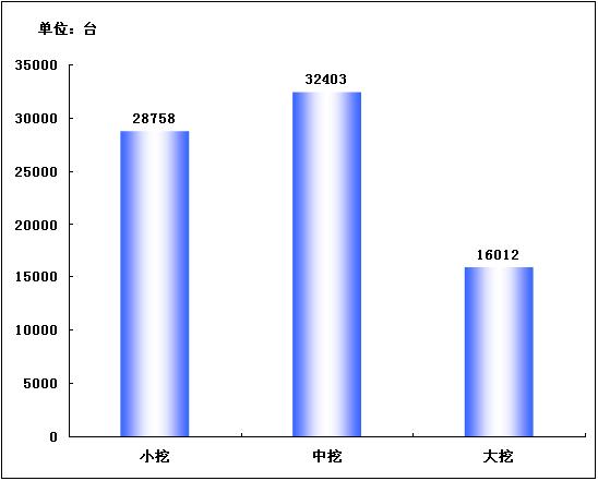 2008年我国挖掘机市场在克服了上半年物价飞涨带来的成本压力和下半年金融危机影响的市场通缩压力下,仍然表现突出,全年挖掘机销量达到77170台,同比增长了15.90%。中国挖掘机市场今年前7个月再次刷新销售纪录,3、4月单月销量连续突破1万台,其中3月份销量超过1.6万台,继去年同期再次刷新中国挖掘机单月销量历史纪录。与此同时,中国市场各主要挖掘机制造企业在2008年上半年的总销量也已依次排出,前三名分别被斗山、小松、日立夺得;自主品牌玉柴、山河智能、三一重工的销售成绩分别位居第七、第八和第十位。2008年12月,我国挖掘机销量从产品看,小挖、大挖占比提高,中挖占比下降。挖掘机向两端发展的趋势明显。从销售区域来看,全年销量在5000台以上的省份中四川地区增速较快。
